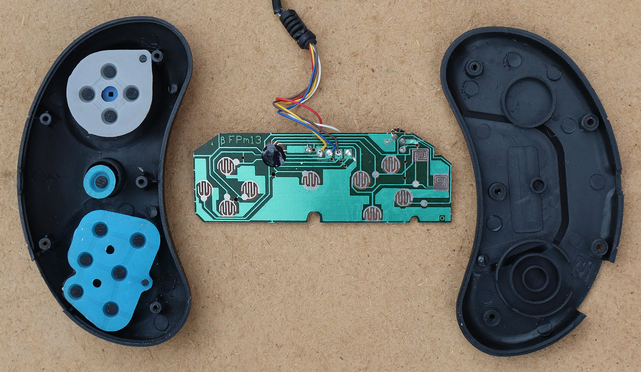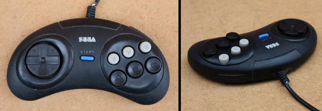 Tipični multipleksirani kontroler (joystick) za jeftine kineske konzole, ovdje kopira oblik originalnog Sega kontrolera.