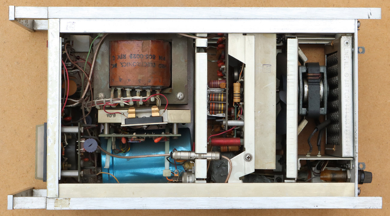 U unutrašnjosti se mogu razlučiti četiri funkcionalne sekcije: mjerni sklopovi montirani na prednjoj ploči, mrežno napajanje, VF pojačalo i sekcija ventilatora sa filtrom zraka te ulazne mrežne komponente (utičnica, osigurač, EMI filtar).