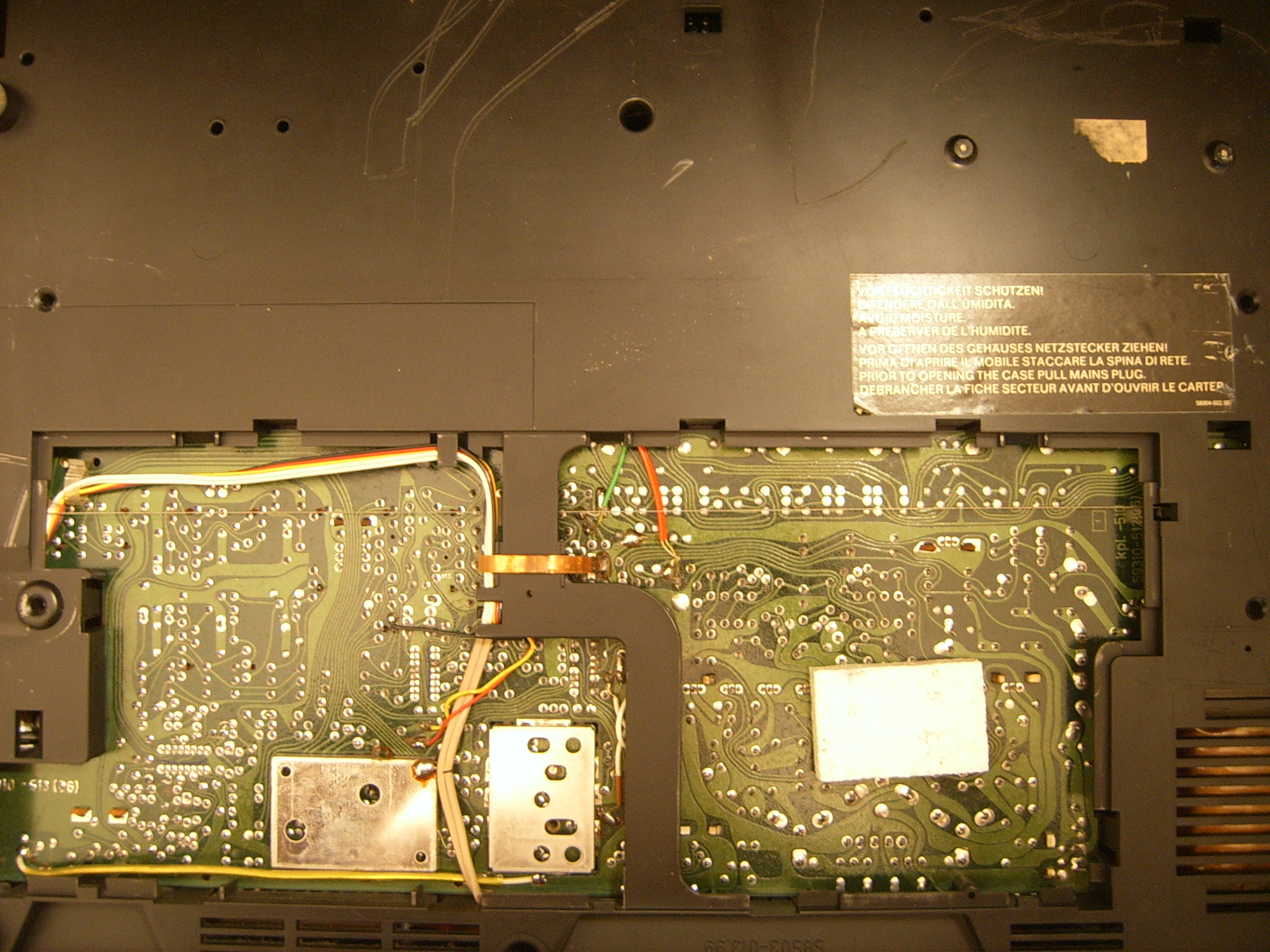 Donjoj strani tiskane pločice radio prijemnika i pojačala moguće je pristupiti skidanjem dijela poklopca kućišta sa donje strane uređaja.