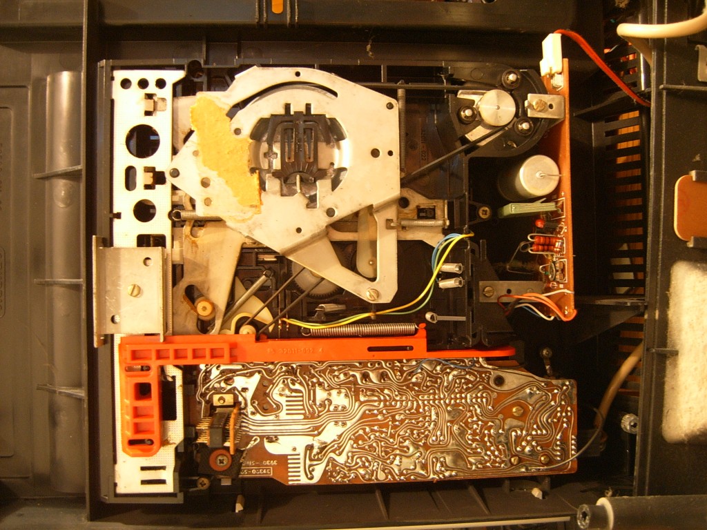 Prvo je sa kućišta skinut gramofon kako bi se dobio pristup elementima za popravak radio prijemnika.