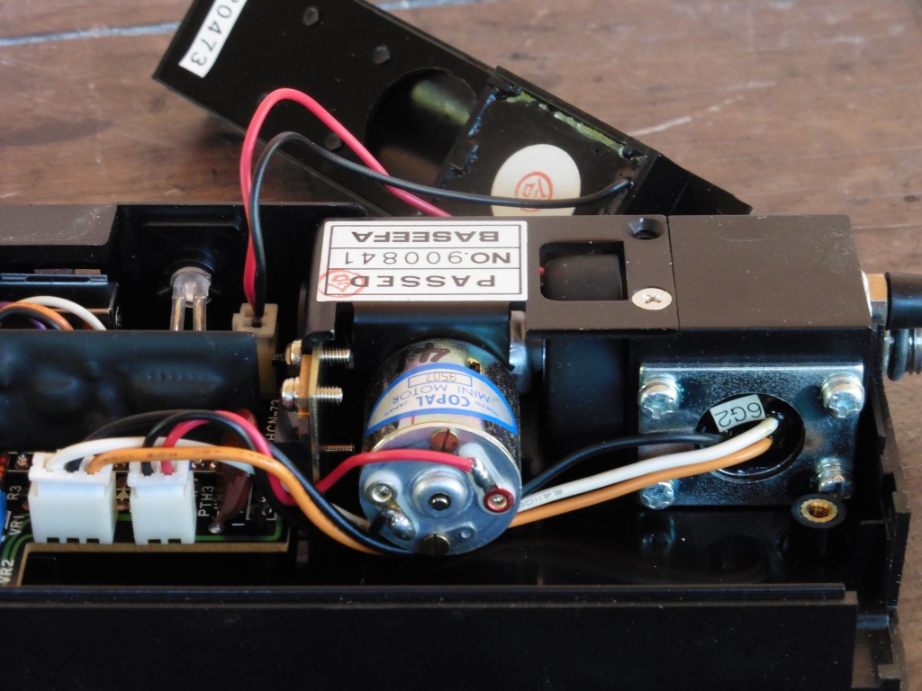 Na donjoj slici vidimo kućište za baterije i dvije priključne žice kojima se napon iz istih dovodi na pločicu elektroničkog sklopa. No, na kućištu baterija uočava se i neka komponenta kvadratnog oblika zalijana u crnu masu. Pretpostavka je da se radi o nekom sklopu za stabilizaciju napanjanja i/ili zaštitu od pogrešnog polariteta istog.