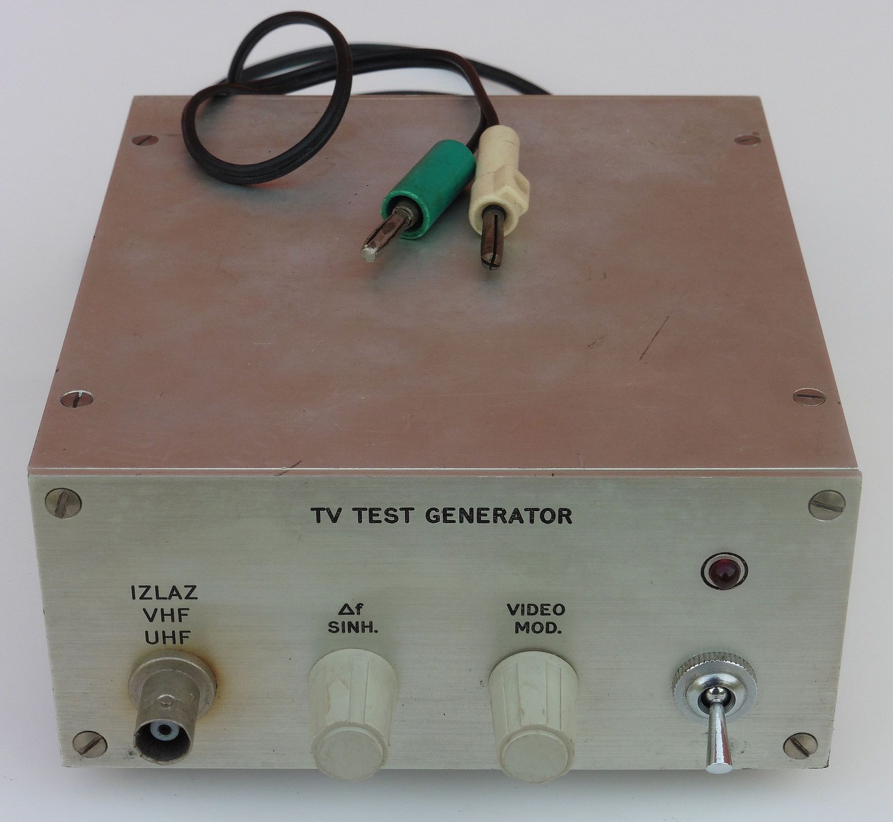 Danas je nabavljen generator testnog signala za podešavanje geometrije crno bijelih televizora, izrađen u samogradnji. O principima rada generatora video signala, kao i o sastavu samih kompozitnih video i TV RF signala već smo pisali u objavama High-kit BAR-GENERATOR UK495 i SADELTA pattern generator te sve opisano vrijedi i za ovaj video generator.