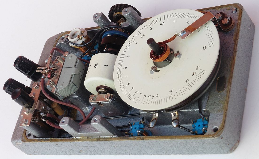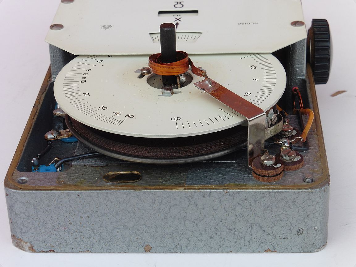 Kad se skine maska sa galvanometarskom skalom dobije se bolji pogled na žičane otpornike Wheatstoneovog mjernog mosta, na galvanometarski instrument sa zakretnim svitkom, zatim sklopku za odabir mjernih područja te na sam žičani potenciometar.Ovaj potenciometar sastoji se od otporne žice koja je fiksirana na okruglu izolacijsku ploču. Po otpornoj žici klizi klizač čiji kontakt se preko spiralne bakrene opruge sa centra osovine dovodi na priključnicu. Na osovinu takvog potenciometra pričvršćena je baždarena mjerna skala.