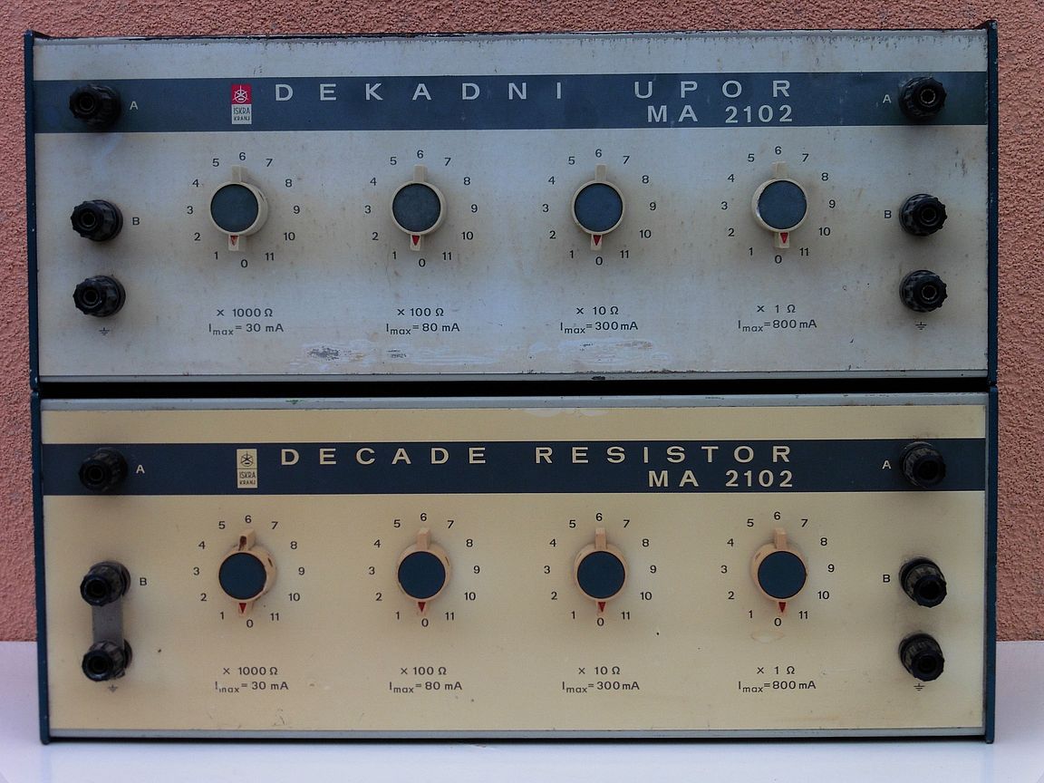 Danas su nabavljene otporne dekade slovenskih proizvođača ISKRA i IEV iz 1960-tih godina pod oznakama modela MA2100, MA2102 i MA 2110. Otporne dekade MA2100 i MA2102 pokrivaju otpore u rasponu 1 Ω – 12221 Ω u koracima po 1Ω te mogu podnijeti struje od 30-800 mA ovisno o slogu. Otporna dekada MA2110 pokriva otpore u rasponu 1 kΩ – 12221 kΩ u koracima po 1 kΩ te može podnijeti struje od 1 -30 mA ovisno o slogu. Općenito gledano, svih šest dekada su međusobno vrlo slične konstrukcije i svaka se sastoji od četiri dekadna sloga sa po 11 otpornika (slojni i žičani otpornici snage 1 – 2W i tolerancije 0,5 – 1%).