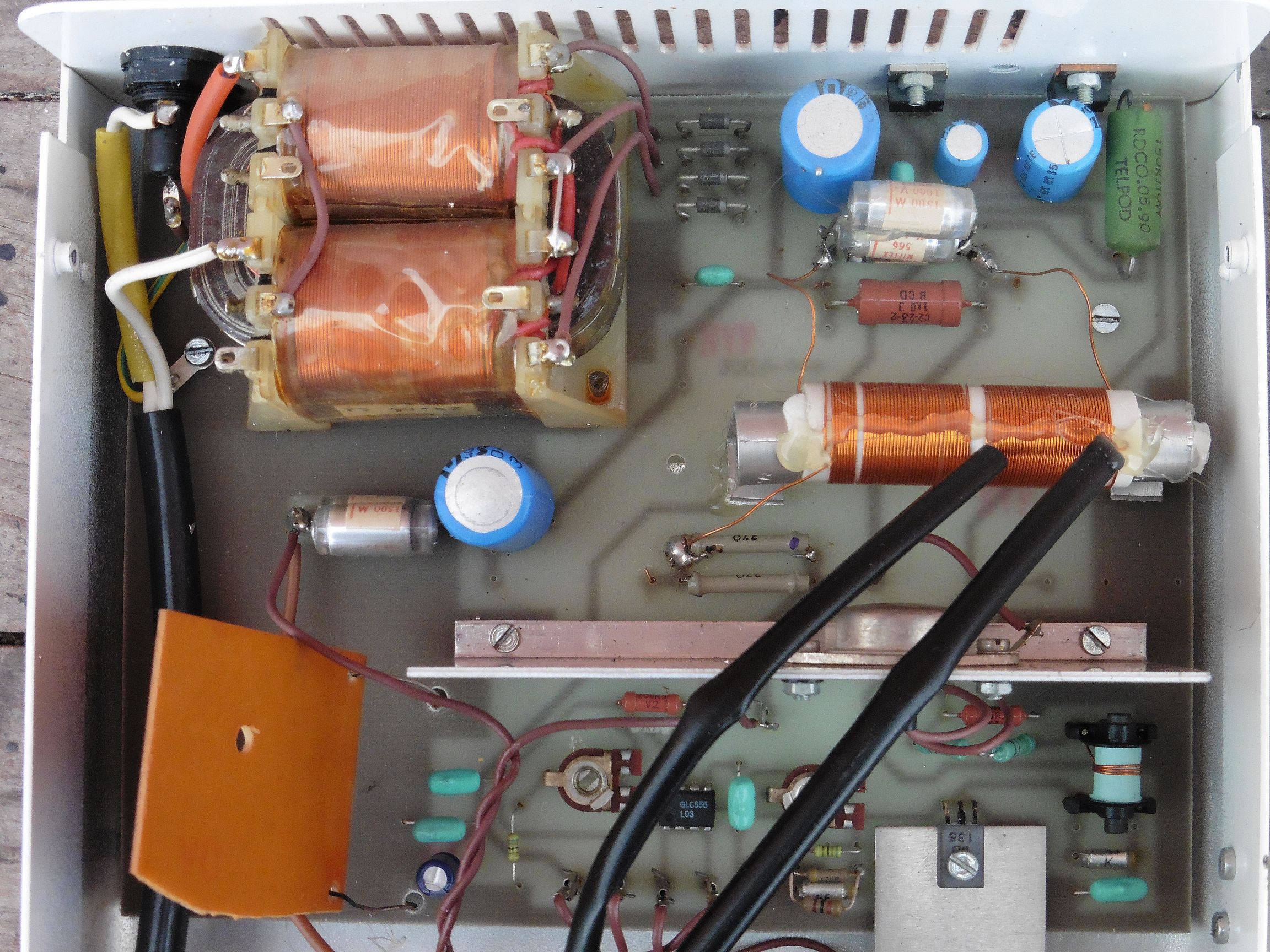 Gornja slika daje bolji pogled na generator impulsnog napona za napajanje VN transformatora (555) te pojačala toga napona sa tranzistorima BD135 i BU326 na hladilima. Donja slika prikazuje kontrolno-upravljački sklop.