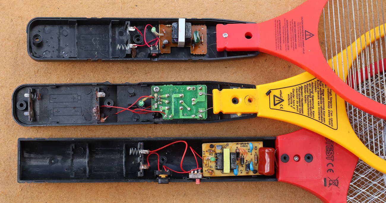 Danas ćemo pogledati od čega se sastoje električni repelenti u obliku lopatice, reketa, mlatilice ili kako god već to nazvali, odnosno naprave kojima trebamo pogoditi insekte u letu i spržiti ih visokim naponom.