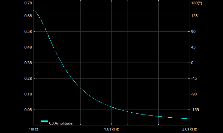 Snimak frekvencijsko-amplitudne karakteristike niskopropusnog filtra pokazuje izraženu strminu do frekvencija oko 1 kHz, a upravo u tom području je i reakcija kaleidoskopa najbolja.