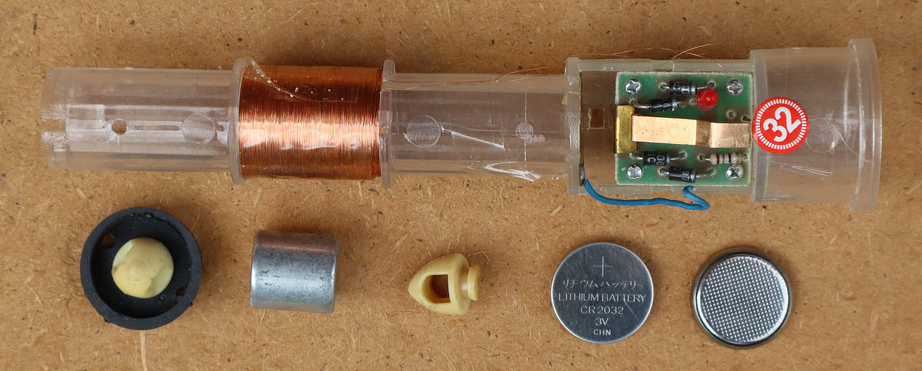 Da se umjesto jednokratnih LR 2032 baterija ovdje stave punjive baterije istih dimenzija, kao što su na primjer LIR 2032 (litij-ion) ili ML 2032 (litij-mangan), napon iz induktora ne bi bio adekvatan za njihovo pravilno punjenje (4,2 V po ćeliji) i trebao bi ugraditi odgovarajući naponski regulator. Čak i uz sve to punjenje baterija preko ovakvog induktora bi trajalo vrlo dugo i vjerojatno bi se svjetiljka prije raspala od trešenja nego bi se baterije stigle napuniti.