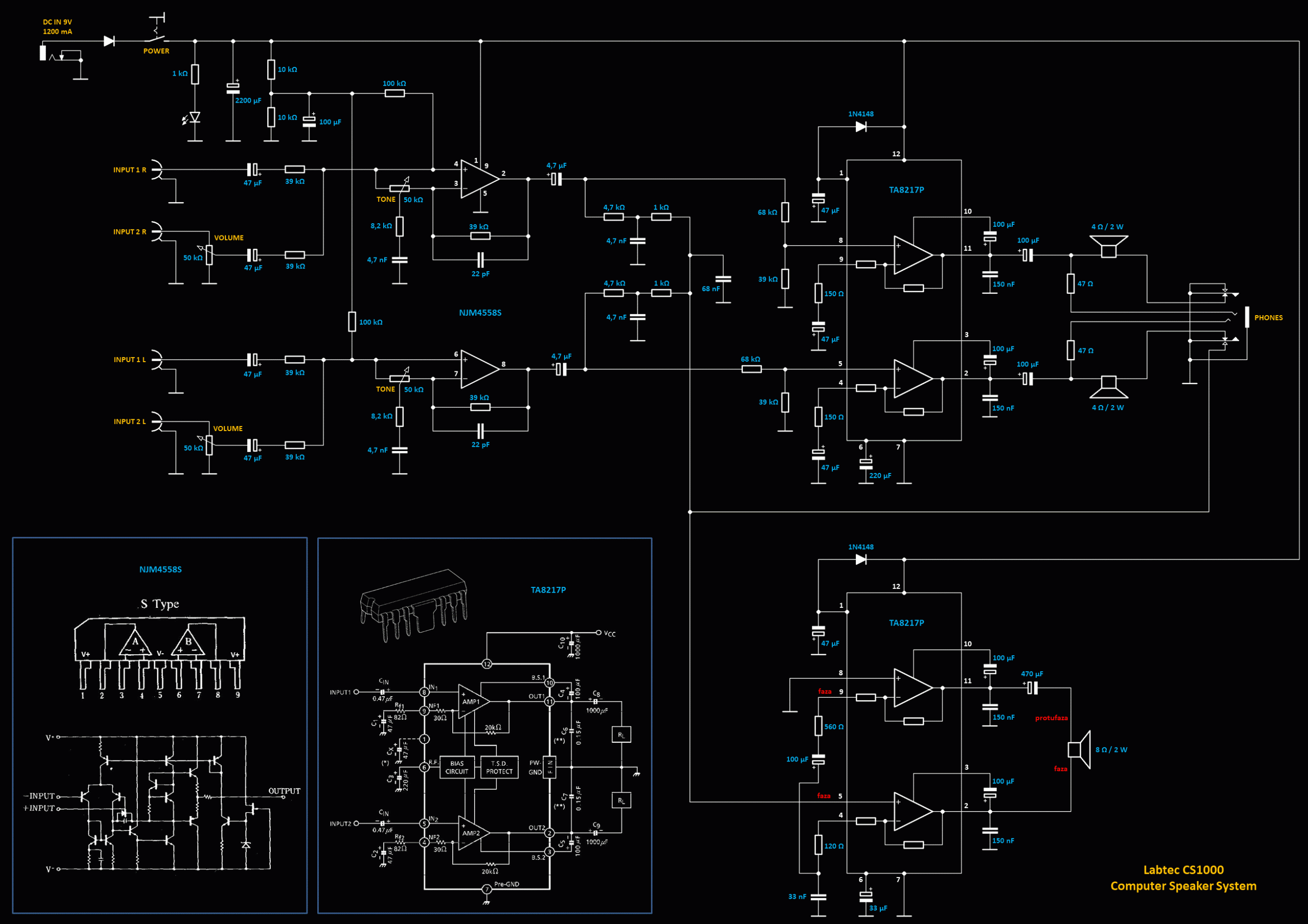 Izvedena elektronička shema PC zvučnika Labtec CS1000.