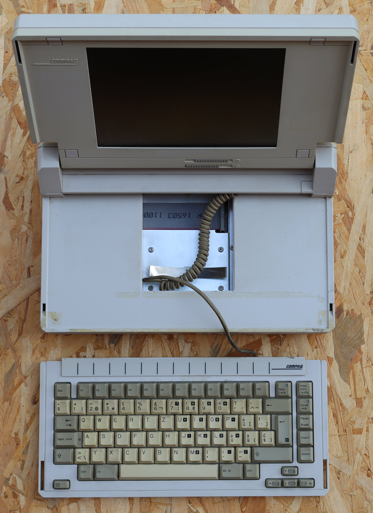 Serijski broj S/N 8116HU4F0060 je vrlo informativan. Prva četiri broja označavaju datum proizvodnje (8: 1988. godina, 11: mjesec studeni, 6: tjedan u mjesecu). To znači da je ovaj laptop proizveden u studenom 1988. godine, što ga čini jednim od vrlo ranih primjeraka, jer je prodaja krenula tek u listopadu te godine. HU je oznaka za tvornicu (najvjerojatnije Houston, Texas, gdje je bilo sjedište Compaqa).