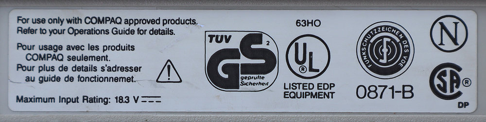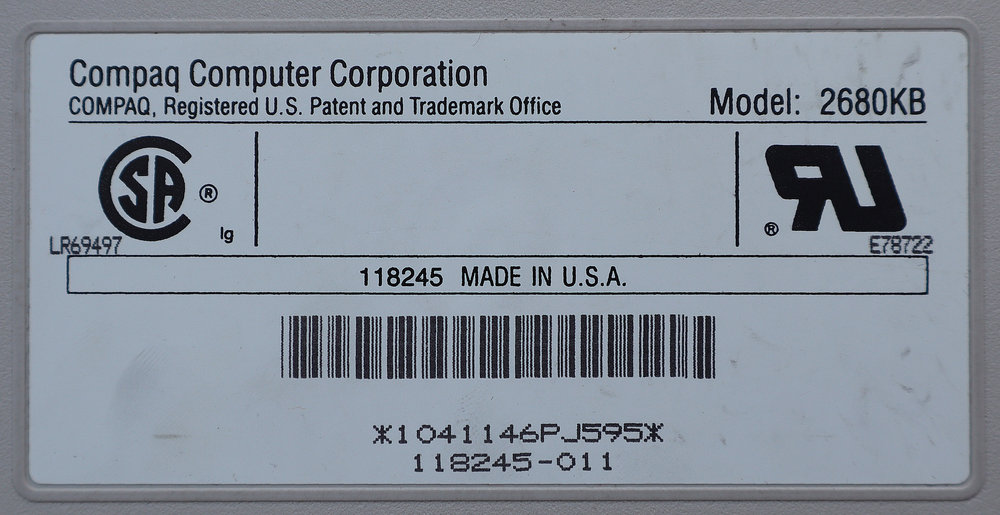 Model 2680 je interna Compaqova oznaka za SLT/286 seriju laptopa. Specifično, ovaj broj se veže uz inačicu koja je dolazila s 40 MB tvrdim diskom (Model 40). Da piše 2670, radilo bi se o slabijem modelu s 20 MB diskom.FCC ID: CNT75M5470 je identifikacijski broj pod kojim je Compaq registrirao uređaj kod američke Federalne komisije za komunikacije (FCC) radi testiranja radio-frekvencijskih smetnji. Ovaj broj potvrđuje da je uređaj prošao stroge testove za klasu B (kućna upotreba), što je tada bila velika stvar jer su mnoga računala stvarala smetnje na televizorima u blizini.