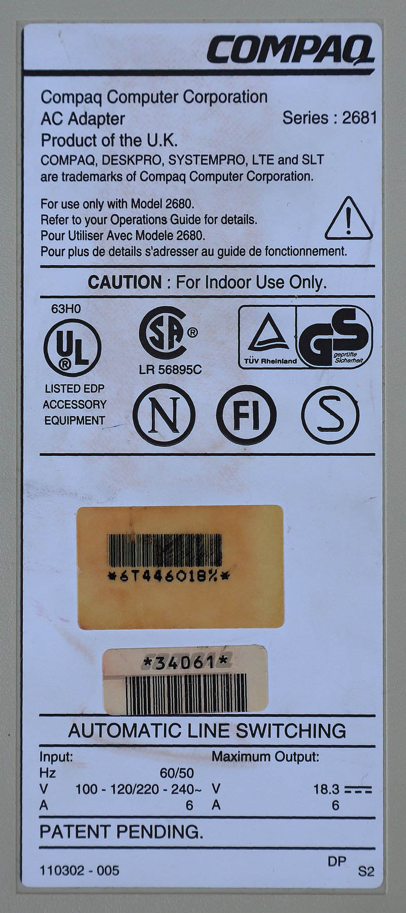 Series 2681: Ovo je oznaka na eksternom napajanju/punjaču (AC Adapter). To je specifičan ispravljač koji daje 18,5V DC i dizajniran je isključivo za SLT seriju.