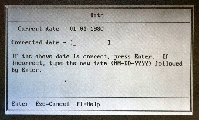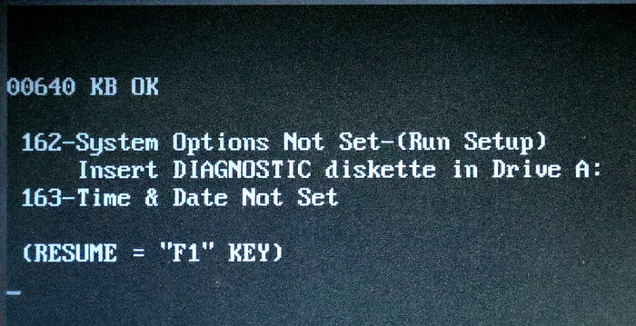 Nakon prvog pokretanja naše računalo prepoznaje 640 KB RAM memorije i javlja dvije tipične greške koje ukazuju da je baterija za BIOS memoriju prazna.