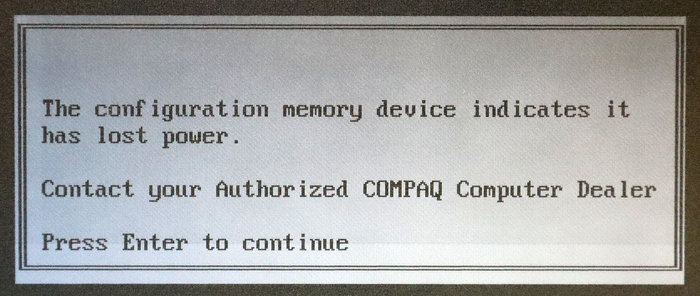 Stoga, kad se kod Compaq SLT/286 isprazni baterija za BIOS memoriju, to uzrokuje mnogo veće probleme nego na modernim računalima, jer ovaj uređaj nema “pametni” BIOS koji sam prepoznaje hardver. Tako će osim gubitaka sistemskog vremena i datuma ispražnjena baterija uzrokovati i probleme sa prepoznavanjem HDD i FDD diska te prepoznavanje proširene RAM memorije. Kada baterija umre, BIOS se vraća na tvorničke postavke te računalo više ne prepoznaje ugrađene diskove. Iako je HDD fizički ispravan i vrti se, računalo uopće ne zna da on postoji i neće mu ni pokušati pristupiti. Isto tako, računalo će FDD pogon od 1,44 MB tretirati ga kao stariji model od 720 KB, što uzrokuje greške pri čitanju novijih disketa u 1,44 MB formatu. Ako su ugrađeni dodatni memorijski moduli za proširenje RAM memorije (iznad standardnih 640 KB), BIOS ih bez baterije neće “vidjeti”. Vidjet ćete samo osnovnih 640 KB, dok će ostatak memorije biti neupotrebljiv dok se ne pokrene Setup.